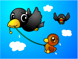 ボクは 地面に近づくと、ヒナの首をくわえて ヒュッと 舞い上がった。